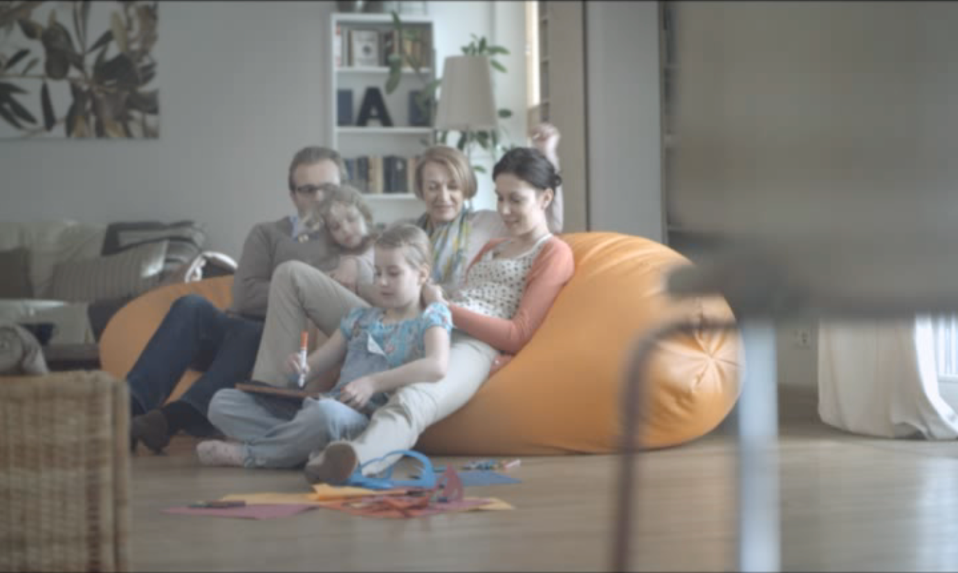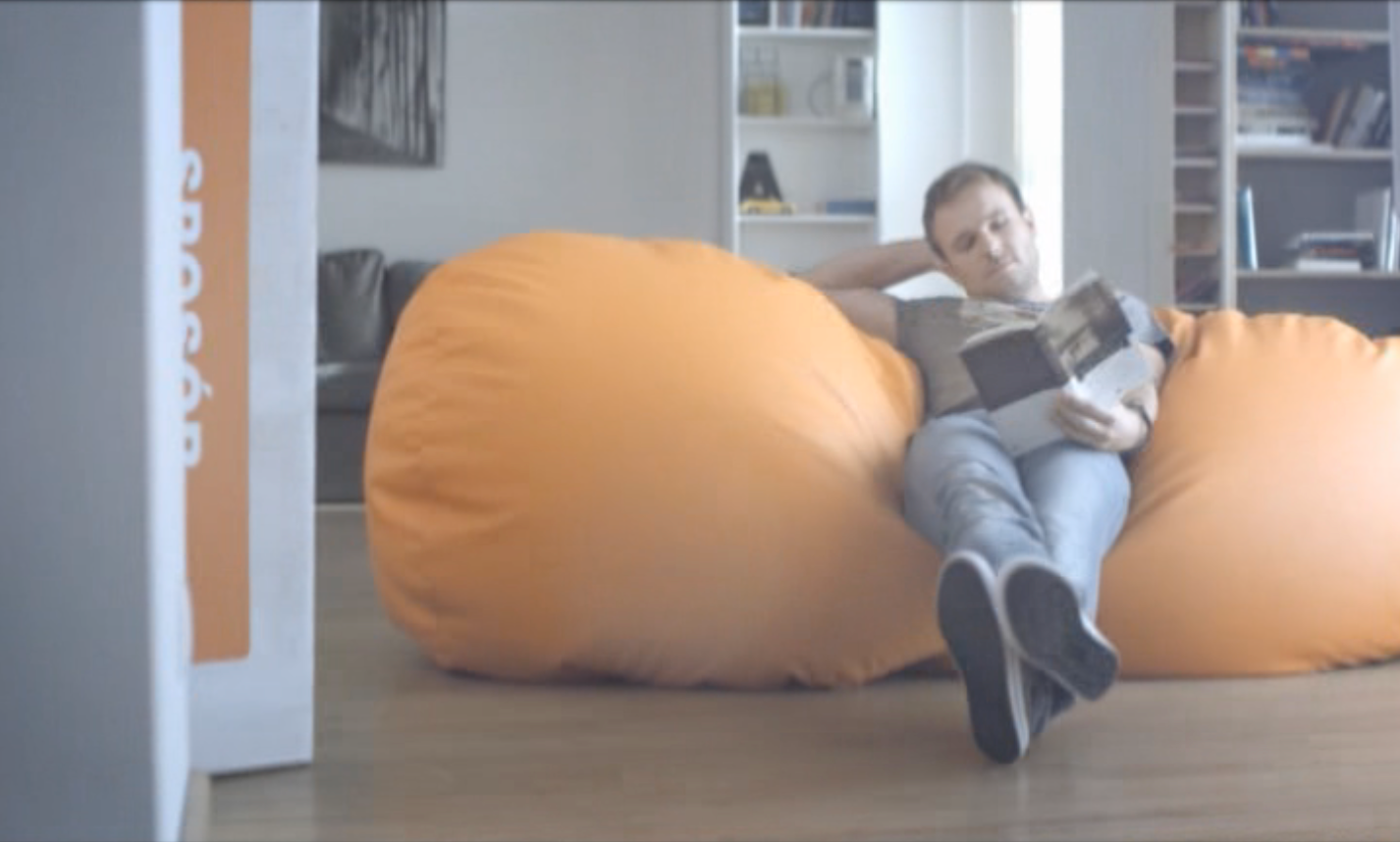 We created a campaign based on the symbol of an orange seat pouffe. This organic piece of furniture adapts its shape to the person/persons sitting on it. It can cozily accommodate one person but also more. The movie accompanies a young man during his life. First he lives alone, then in a relationship, and finally, with his family.